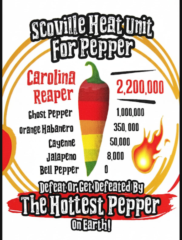 From bell pepper (0 SHU) to Carolina Reaper (2,200,000 SHU). This isn't dinner β it's survival.